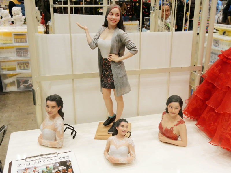 美峰ブースには人間の顔や体を3Dスキャンし、3Dプリンターで出力したものが置いてあり、